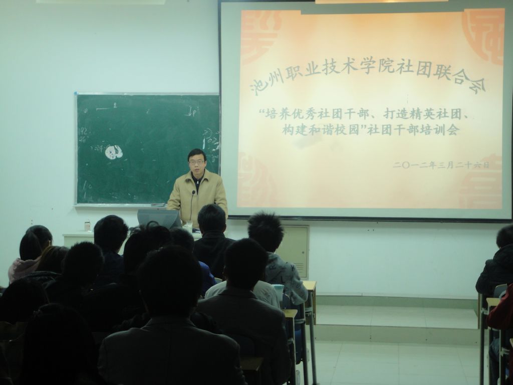 为增强我院学生社团干部的政治意识、责任意识、创新意识、安全意识,加强学生社团干部队伍的凝聚力、战斗力,提高他们的整体素质,2012年3月26日,院团委组织举行了以“培养优秀社团干部,打造精英社团,构建和谐校园”为主题的学生社团干部培训会,会议由院团委夏亮同志主持。